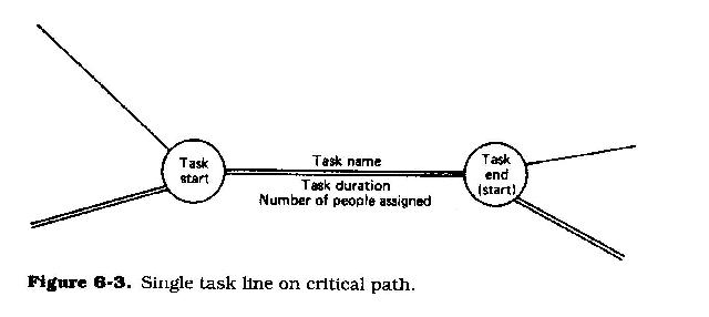CPM charts are similar to PERT charts and are sometimes known as PERT/CPM. In a CPM chart the critical path is indicated (Figures 6.3 and 6.4). A critical path consists of that set of dependent tasks (each dependent upon the preceding one) which together take the longest time to complete. Although it is not normally done, a CPM chart can define multiple, equally critical paths.  Tasks which fall on the critical path should be noted in some way, so that they may be given special attention. One way is to draw critical path tasks with a double line, instead of a single line.