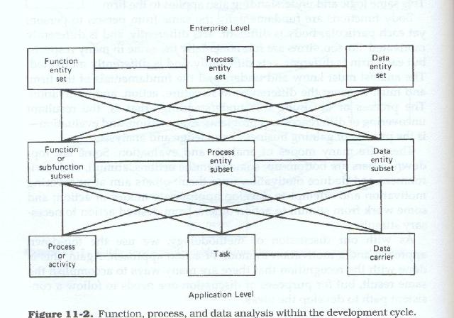 Analysis in a business environment deals with business components. These business components are the units into which the organization is divided, the functions of those units, the processes and activities associated with those functions, the tasks associated with those activities, and the data or information associated with those tasks.