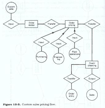 It thus becomes necessary to state clearly whether we are modeling the flow of processes logically between units or physically within a unit itself, or whether we are modeling the processing actions themselves. The logical flow follows the transaction through the firm; here the transaction remains constant and the processing areas change. The physical flow models the inputs and outputs of a particular unit; here the unit remains constant and the flows change. The logical flow is the more difficult of these models, since, as stated previously, process entities interact in ways which transcend and cross the hierarchic boundaries which are implicit in the table of organization. A process model can depict these inter-process relationships and interactions in a much clearer and more meaningful way than can a straight narrative.